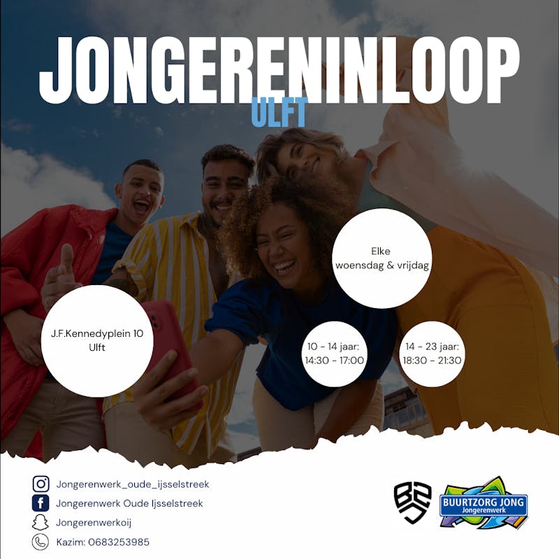 Elke woensdagavond en vrijdagavond is er een jongeren inloop van 18:30 tot 21:30 voor jongens en meisjes tussen de 14 en 23 jaar oud!