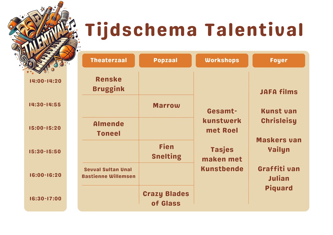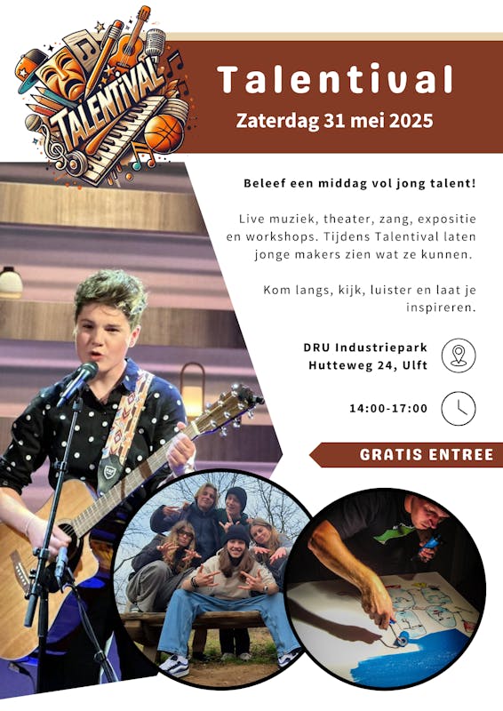 We kijken vol verwachting uit naar deze eerste editie van Talentival โ het begin van een nieuwe traditie waar jong talent jaarlijks de ruimte krijgt om te schitteren! Zien we je daar? Kom genieten van jong talent, laat je inspireren en vier creativiteit met ons mee!