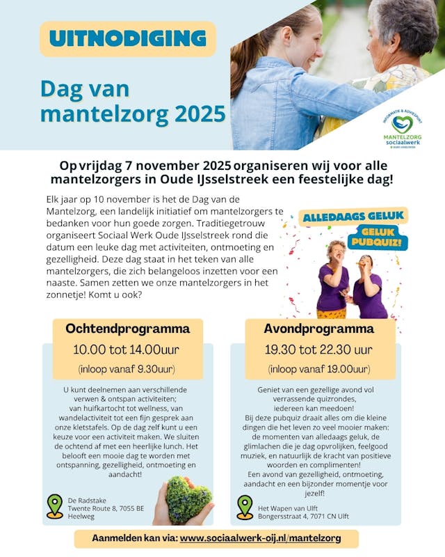 Op vrijdag 7 november 2025 organiseren wij voor alle mantelzorgers in Oude IJsselstreek een feestelijke dag!